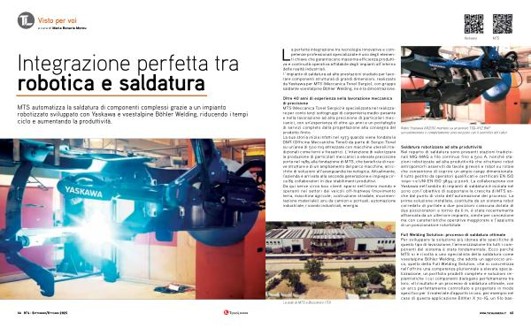 MTS automatizza la saldatura di componenti complessi grazie a un impianto robotizzato sviluppato con Yaskawa e voestalpine Böhler Welding, riducendo i tempi ciclo e aumentando la produttività.