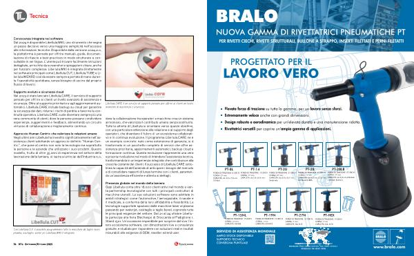 Approccio Human Centric che valorizza le relazioni umane Negli ultimi anni Libellula ha investito significativamente nell’ assistenza clienti adottando un approccio definito“ Human Centric”, che pone al centro non solo la tecnologia ma soprattutto le persone e le aziende che utilizzano i suoi prodotti. Questo modello, frutto di oltre 35 anni di esperienza nel settore della lavorazione della lamiera, si ispira ai principi dell’ Industria 5.0,