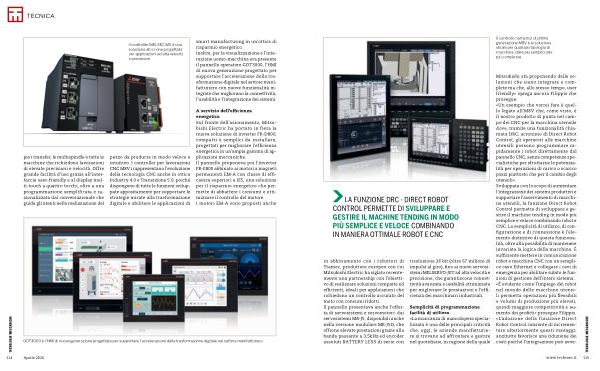 pezzo da produrre in modo veloce e intuitivo. I controller per lavorazioni CNC M8V i rappresentano l’ evoluzione della tecnologia CNC anche in ottica Industry 4.0 e Transizione 5.0, poiché dispongono di tutte le funzioni sviluppate appositamente per supportare le strategie mirate alla trasformazione digitale e abilitare le applicazioni di smart manufacturing in un’ ottica di risparmio energetico. Inoltre, per la visualizzazione e l’ interazione uomo-macchina era presente il pannello operatore GOT3000, l’ HMI di nuova generazione progettato per supportare l’ accelerazione della trasformazione digitale nel settore manifatturiero con nuove funzionalità integrate che migliorano la connettività, l’ usabilità e l’ integrazione dei sistemi.