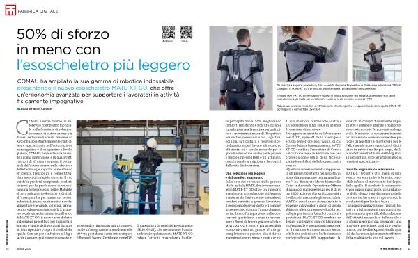 COMAU ha ampliato la sua gamma di robotica indossabile presentando il nuovo esoscheletro MATE-XT GO, che offre un’ ergonomia avanzata per supportare i lavoratori in attività fisicamente impegnative.