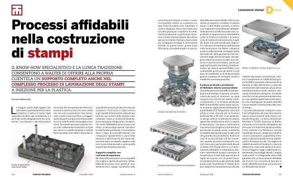 IL KNOW-HOW SPECIALISTICO E LA LUNGA TRADIZIONE CONSENTONO A WALTER DI OFFRIRE ALLA PROPRIA CLIENTELA UN SUPPORTO COMPLETO ANCHE NEL COMPLESSO PROCESSO DI LAVORAZIONE DEGLI STAMPI A INIEZIONE PER LA PLASTICA .