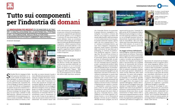 che . Schneider Electric ha presentato le proprie direttrici strategiche e tecnologiche , tracciando lo scenario del mercato con il supporto di relatori del mondo della finanza e dell ’ innovazione e con la testimonianza di alcune grandi aziende industriali italiane . Questa sede è da circa cinquant ’ anni il “ cuore ” emiliano di Schneider Electric ; qui sono state sviluppate competenze di altissimo livello proprio nell ’ ambito della costruzione di macchine per il packaging ; un centinaio di professionisti qualificati supporta i clienti in ogni fase . Ma nuove forze arrivano in modo continuativo , con l ’ assunzione di personale spesso proveniente dai percorsi di formazione delle Accademie Industria 4.0 ed Efficienza Energetica che Schneider Electric propone a scuole e università del territorio . Fabio Parmeggiani , Direttore Commerciale di area di Schneider Electric , ha sottolineato come l ’ azienda abbia già portato a termine innumerevoli progetti con i più importanti costruttori di macchine : « Il continuo investimento su questo Hub attesta il valore che produciamo per l ’ azienda e per i nostri clienti . In particolare , siamo inseriti pienamente nel tessuto connettivo della comunità e del sistema economico locale . Ci mettiamo a disposizione per aiutarlo a crescere , a comprendere e praticare l ’ innovazione , al fine di creare opportunità di formazione in settori dove la domanda , anche da parte dei nostri clienti , è altissima ». Schneider Electric , infatti , collabora con le scuole superiori a indirizzo tecnico e con le Università di Bologna e Ferrara sia per la didattica , offrendo docenze e progetti , sia con le
