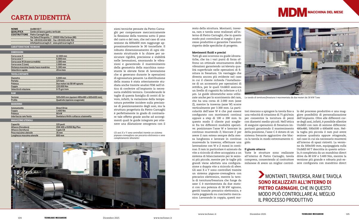 MACCHINA DEL MESE resto della struttura. Montanti, traversa, ram e tavola sono realizzati all’ interno di Pietro Carnaghi, che in questo modo può controllare al meglio il processo produttivo e garantire l’ assoluto rispetto delle specifiche di progetto.