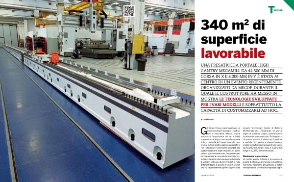 UNA FRESATRICE A PORTALE HIGH GANTRY MEGAMILL DA 42.500 MM DI CORSA IN X E 8.000 MM IN Y È STATA AL CENTRO DI UN EVENTO RECENTEMENTE ORGANIZZATO DA MECOF, DURANTE IL QUALE IL COSTRUTTORE HA MESSO IN MOSTRA LE TECNOLOGIE SVILUPPATE PER I VARI MODELLI E SOPRATTUTTO LA CAPACITÀ DI CUSTOMIZZARLI AD HOC.
