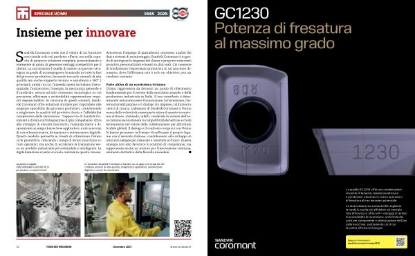 Attraverso l’ impiego di piattaforme connesse, analisi dei dati e sistemi di monitoraggio, Sandvik Coromant è in grado di anticipare le esigenze del cliente e proporre interventi proattivi, personalizzati e basati su dati reali. Ciò consente di trasformare l’ esperienza produttiva in un processo dinamico, dove l’ efficienza non è solo un obiettivo, ma un risultato costante.