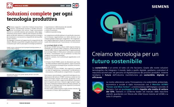 La nostra attenzione verso l’ innovazione e la sostenibilità ambientale, economica e sociale è stata riconosciuta con il Marchio UCIMU“ Green and Blue Action”, a testimonianza dell’ impegno concreto di Siemens. Con un punteggio di 95 % rispetto alla media di settore del 53 %, Siemens si conferma leader nel mercato delle macchine utensili, guardando con fiducia alle sfide future insieme ad UCIMU e a tutto il comparto.