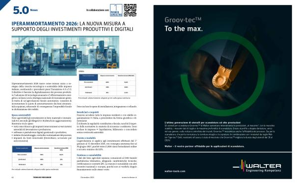 L‘ ultima generazione di utensili per scanalatura ad alte prestazioni Gli utensili per scanalatura Groov · tec™ di Walter aumentano letteralmente le prestazioni „ al massimo“, con la massima stabilità, i massimi dati di taglio e le massime profondità di scanalatura. Grazie al profilo a doppia dentatura, unico nel suo genere, e alla rottura controllata dei trucioli, Groov · tec™ massimizza anche l‘ affidabilità del processo. Sia per la scanalatura, che per la troncatura, la tornitura intaglio o la copiatura: In combinazione con i materiali da taglio Walter Tiger · tec ® Gold, resistenti all‘ usura, è stato dimostrato che Groov · tec™ migliora la durata degli utensili dal 30 al 150 %!