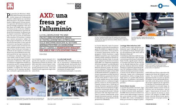 Per garantire più efficienza e affidabilità nelle lavorazioni meccaniche risulta sempre più fondamentale la stretta collaborazione tra costruttore della macchina e chi produce l’ utensile. Questa collaborazione virtuosa permette di garantire all’ utilizzatore finale una serie di vantaggi competitivi. Tutto ciò è ben chiaro sia in MMC Italia, sia in Jobs che hanno messo in atto una collaborazione per l’ installazione di una fresa dedicata alla lavorazione di alluminio per il comparto aeronautico. Nello specifico Jobs è da anni un punto di riferimento nella fornitura di macchine e sistemi per il settore aeronautico. Infatti, Fin dalla propria fondazione, nel 1979, Jobs ha costruito macchine a 5 assi, tanto da costruirsi in casa il proprio controllo numerico quando ancora sul mercato non erano presenti prodotti maturi. Ancora oggi, la forza di Jobs per l’ aerospace è costituita da due aspetti: la conoscenza del processo e la possibilità di avere soluzioni specifiche per ogni materiale, che sia alluminio, composito o leghe tenaci come quelle a base di titanio. In particolare, uno dei materiali più utilizzati in aeronautica è l’ alluminio. Nello specifico l’ alluminio è largamente utilizzato in aeronautica perché coniuga proprietà di robustezza, leggerezza ed elevata lavorabilità. Le esigenze dei clienti sono di lavorare con la massima produttività, continuità e generando pezzi che