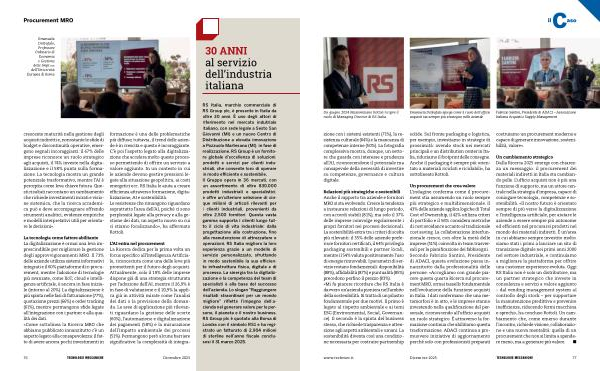 La tecnologia come fattore abilitante La digitalizzazione è ormai una leva imprescindibile per migliorare la gestione degli approvvigionamenti MRO. Il 73 % delle aziende utilizza sistemi informativi integrati e il 60 % piattaforme di e-procurement, mentre l’ adozione di tecnologie più avanzate, come IIoT, cloud e intelligenza artificiale, è ancora in fase iniziale( intorno al 20 %). La digitalizzazione è più spinta nelle fasi di fatturazione( 77 %), quotazione prezzi( 66 %) e order tracking( 61 %), mentre permangono sfide legate all’ integrazione con i partner e alla qualità dei dati. « Come sottolinea la Ricerca MRO che abbiamo pubblicato innanzitutto c’ è un aspetto legato alla consapevolezza: il fatto di avere ancora pochi investimenti in formazione è una delle problematiche più diffuse; tuttavia, il trend delle aziende è in crescita e questo è incoraggiante. C’ è poi l’ aspetto legato alla digitalizzazione che accelera molto questo processo permettendo di offrire un servizio a valore aggiunto. In un contesto in cui le aziende devono gestire pressioni legate alla situazione geopolitica, ai costi energetici ecc. RS Italia le aiuta a creare efficienza attraverso formazione, digitalizzazione, AI e sostenibilità. Le resistenze che rimangono riguardano soprattutto l’ area dell’ AI, poiché ci sono perplessità legate alla privacy e alla gestione dei dati, un aspetto nuovo su cui ci stiamo focalizzando », ha affermato Rottoli.