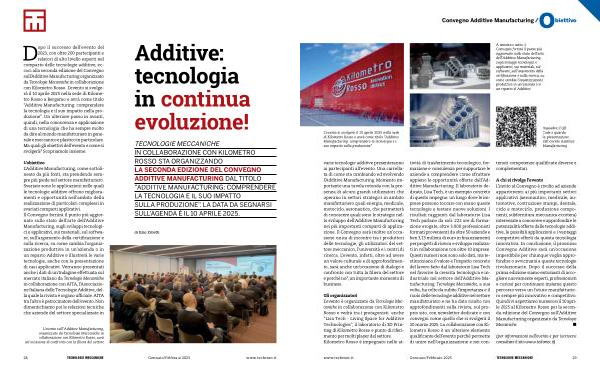 A chi si rivolge l ’ evento L ’ invito al Convegno è rivolto ad aziende appartenenti ai più importanti settori applicativi ( aeronautico , medicale , automotive , costruzione stampi , dentale , ciclo e motociclo , produzione componenti , subfornitura meccanica eccetera ) interessate a conoscere e approfondire le potenzialità offerte dalle tecnologie additive , le possibili applicazioni e i vantaggi competitivi offerti da questa tecnologia innovativa . In conclusione , il prossimo Convegno Additive sarà un ’ occasione imperdibile per chiunque voglia approfondire o avvicinarsi a queste tecnologie rivoluzionarie . Dopo il successo della prima edizione siamo entusiasti di accogliere nuovamente esperti , professionisti e curiosi per continuare insieme questo percorso verso un futuro manifatturiero sempre più innovativo e competitivo . Quindi vi aspettiamo numerosi il 10 aprile 2025 al Kilometro Rosso per la seconda edizione del Convegno sull ’ Additive Manufacturing organizzato da Tecnologie Meccaniche .