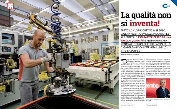 TUTTO IL CICLO PRODUTTIVO IN BREMBO , DALLA PROGETTAZIONE ALLA PRODUZIONE E AL CONTROLLO , È CARATTERIZZATO DA UNA PAROLA : QUALITÀ ! NE ABBIAMO PARLATO CON MARIO PICCIONI , CHIEF OPERATION DELLA CASA BERGAMASCA AFFERMATA A LIVELLO INTERNAZIONALE .