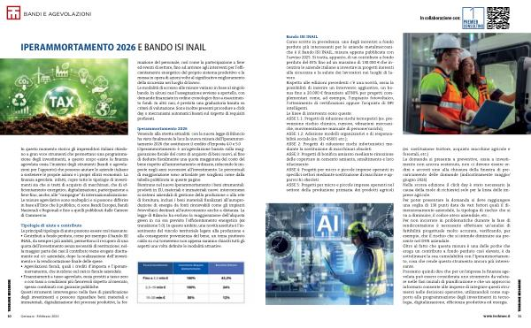 Iperammortamento 2026 Venendo alla stretta attualità, con la nuova legge di Bilancio ha visto finalmente la luce la nuova misura dell’ Iperammortamento 2026 che sostituisce il credito d’ Imposta 4.0 e 5.0 L’ Iperammortamento è un’ agevolazione basata sulla maggiorazione fiscale del costo di acquisto di beni nuovi, al fine di dedurre fiscalmente una quota maggiorata del costo del bene rispetto all’ ammortamento ordinario, riducendo le imposte negli anni successivi all’ investimento. Le percentuali di maggiorazione sono articolate per scaglioni come dalla tabella pubblicata in queste pagine. Rientrano nel nuovo Iperammortamento i beni strumentali, prodotti in EU, materiali e immateriali nuovi, interconnessi ai sistemi aziendali di gestione della produzione o alla rete di fornitura, inclusi i beni materiali finalizzati all’ autoproduzione di energia da fonti rinnovabili come gli impianti fotovoltaici destinati all’ autoconsumo anche a distanza. La legge di Bilancio ha escluso la maggiorazione dell’ aliquota green in cui era previsto l’ efficientamento energetico( ex transizione 5.0). In questo ambito, una novità assoluta è l’ inserimento del vincolo territoriale legato alla produzione e alla conseguente provenienza del bene, un tema piuttosto caldo su cui torneremo non appena saranno chiariti tutti gli aspetti una volta definite le modalità attuative.