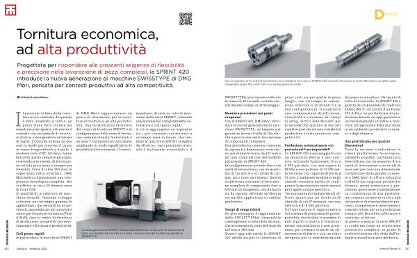 Progettata per rispondere alle crescenti esigenze di flessibilità e precisione nella lavorazione di pezzi complessi, la SPRINT 420 introduce la nuova generazione di macchine SWISSTYPE di DMG Mori, pensata per contesti produttivi ad alta competitività.
