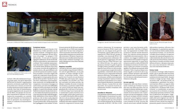 Produzione interna Uno dei punti di forza di Cimolai è l’ affidabilità sia a livello aziendale, sia dei prodotti realizzati. « Sviluppiamo più di 100.000 ore di ingegneria all’ anno all’ interno del gruppo – ha spiegato il CEO dell’ azienda – Ci sono più di cinquanta ingegneri suddivisi tra calcolo strutturale, idraulica, parte elettrica, parte elettronica e software. Tutto è realizzato internamente per due motivi: il primo è che abbiamo un controllo diretto del flusso di processo e non siamo vincolati alle tempistiche di aziende esterne, alle quali affidiamo solo piccole lavorazioni meccaniche o carpenterie secondarie; il secondo è legato alla qualità dei componenti che produciamo. Ogni progetto è un’ opera pressoché unica perché anche i prodotti“ standard” hanno una forte componente di personalizzazione, motivo per cui è indispensabile che competenze e lavorazioni rimangano al nostro interno, per assicurare l’ affidabilità di ogni macchina nonostante l’ unicità del progetto ». In quest’ ottica diventa centrale l’ attività di Armando Cimolai Centro Servizi, che realizza lavorazioni meccaniche sia conto terzi sia per le altre realtà del gruppo. Nello stabilimento di San Quirino( PN) si producono tubi circolari e pali poligonali per le telecomunicazioni, per l’ alta tensione e per il settore eolico, strutture per ponti fissi e galleggianti e travi saldate. Si tratta di una struttura da 180.000 metri quadrati di superficie, di cui 70.000 metri quadrati coperti dove l’ acciaio viene sottoposto a tutte le lavorazioni necessarie alla realizzazione delle carpenterie meccaniche sino alla verniciatura. All’ interno di questo stabilimento sono installati sistemi di produzione ad alto contenuto tecnologico, tra i quali si distinguono le macchine realizzate da SORALUCE.
