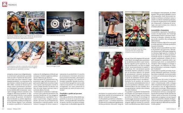 aumentare la produttività. Il concetto di automazione è declinato attraverso linee produttive flessibili, robotizzate e fortemente integrate con i sistemi informatici aziendali. Brembo ha attivato anche diversi progetti di ricerca sulla robotica avanzata( co-bot, soft-robotic), sviluppando use-cases industriali in partenariato con centri di ricerca e università.”
