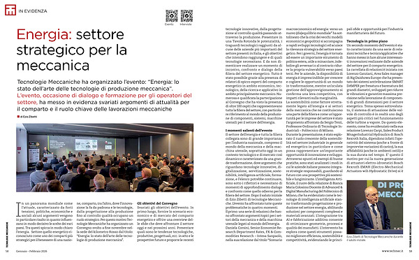 Tecnologie Meccaniche ha organizzato l’ evento:“ Energia: lo stato dell’ arte delle tecnologie di produzione meccanica”. L’ evento, occasione di dialogo e formazione per gli operatori del settore, ha messo in evidenza svariati argomenti di attualità per il comparto e il ruolo chiave delle lavorazioni meccaniche