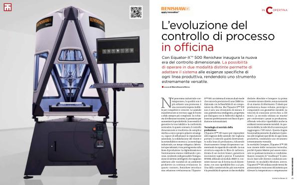Tecnologia al servizio della produzione L’ Equator-X™ 500 nasce per rispondere alle esigenze delle aziende che vogliono portare il controllo qualità direttamente sulla linea di produzione, riducendo drasticamente i tempi di ispezione e aumentando la capacità di controllo. La sua struttura esapode in fibra di carbonio, dotata di sei motori lineari, garantisce movimenti rapidi e precisi. Il tastatore SP25M, abbinato al modulo SM25-2, consente misure sia di forma sia di dimensione, con una ripetibilità fino a ± 2 μm. Una delle caratteristiche più innovative è la possibilità di operare in due modalità distinte: Absolute e Compare. La prima consente misure dirette, senza necessità di un master di riferimento. È ideale per produzioni a basso volume, prototipi o componenti con geometrie variabili. La velocità di scansione arriva fino a 250 mm / s. La seconda utilizza un master per confrontare i pezzi in produzione, offrendo velocità e ripetibilità anche in ambienti termicamente instabili. In questa modalità, la velocità di scansione può raggiungere i 500 mm / s. Questa doppia funzionalità permette di adattare il sistema alle esigenze specifiche di ogni linea produttiva, rendendolo uno strumento estremamente versatile. In modalità Compare, l’ Equator-X™ 500 non risente delle variazioni termiche, poiché il pezzo Master può essere misurato in qualsiasi momento e condizione. Questo consente di“ ricalibrare” il sistema in base alle diverse condizioni ambientali. In modalità Absolute, invece, l’ Equator-X™ 500 utilizza sonde termiche posizionate in varie zone del sistema per rilevare la temperatura e compensarne