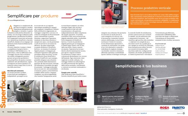 Rosa Ermando SpA è un’ eccellenza italiana nel campo della rettifica tangenziale, riconosciuta a livello globale per le soluzioni a marchio Rosa GrindTech e Favretto GrindTech. Ogni macchina nasce da un processo produttivo altamente verticalizzato, che garantisce precisione e affidabilità. Lo stabilimento di Rescaldina( Milano) unisce tecnologia avanzata, attenzione alla sostenibilità e sicurezza per le persone. integrata una soluzione che permette di conoscere in modo preciso il costo energetico di ciascun ciclo di lavorazione. Inserendo il prezzo unitario dell’ energia, la macchina restituisce il valore di consumo di una determinata operazione e consente di confrontarlo con quello di un ciclo alternativo, aiutando a individuare la migliore strategia con benefici concreti in termini di efficienza operativa e sostenibilità. Questo sistema si distingue anche per la notevole facilità di installazione, poiché i sensori sono poco invasivi e scalabili, così da monitorare solo i componenti di interesse – dal mandrino agli assi fino alla centralina – e adattarsi con semplicità sia a macchine nuove sia a quelle già in uso. Sempre in un’ ottica di continuità, Rosa Ermando pone infine l’ accento sui concetti di revisione delle macchine nella loro configurazione esistente e di retrofit, permettendo ai clienti di preservare e valorizzare l’ investimento già effettuato, mantenendo l’ affidabilità delle macchine nel tempo e affiancando l’ introduzione di funzionalità avanzate là dove risultino necessarie.