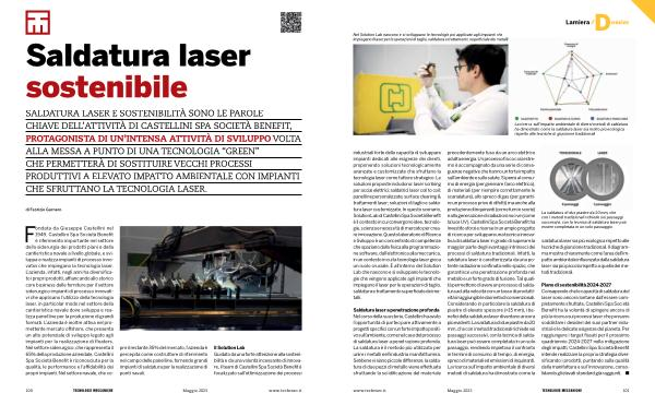 SALDATURA LASER E SOSTENIBILITÀ SONO LE PAROLE CHIAVE DELL’ ATTIVITÀ DI CASTELLINI SPA SOCIETÀ BENEFIT, PROTAGONISTA DI UN’ INTENSA ATTIVITÀ DI SVILUPPO VOLTA ALLA MESSA A PUNTO DI UNA TECNOLOGIA“ GREEN” CHE PERMETTERÀ DI SOSTITUIRE VECCHI PROCESSI PRODUTTIVI A ELEVATO IMPATTO AMBIENTALE CON IMPIANTI CHE SFRUTTANO LA TECNOLOGIA LASER.