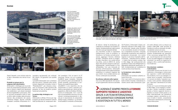 Prodotti su misura per le esigenze dell’ odontoiatria Zirkonzahn si distingue per la produzione di componenti protesiche come basi in titanio e Multi-Unit Abutment che soddisfano i più elevati standard di biocompatibilità e precisione. « Tutti i processi avvengono sotto lo stesso tetto, dallo sviluppo della strumentazione alla produzione dei pezzi », sottolinea Steiger. Questo controllo completo consente all’ azienda di rispondere rapidamente alle richieste dei clienti e di garantire una qualità costante. I prodotti Zirkonzahn non si limitano alla meccanica: l’ azienda offre anche sistemi diagnostici innovativi come il“ PlaneSystem ®”, per rilevare e misurare la situazione orale specifica del paziente al fine di produrre protesi funzionali ed estetiche.