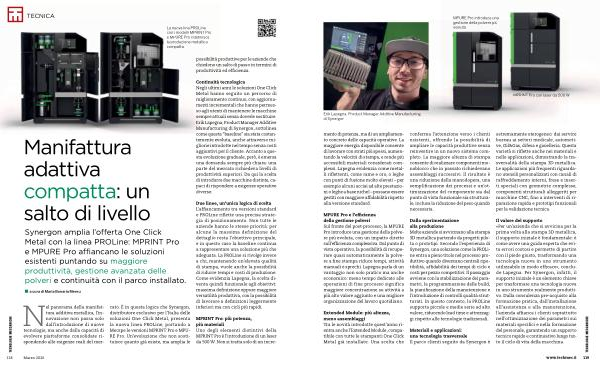 Il valore del supporto « Per un’ azienda che si avvicina per la prima volta alla stampa 3D metallica, il supporto iniziale è fondamentale: è come avere una guida esperta che evita errori costosi e permette di partire con il piede giusto, trasformando una tecnologia nuova in uno strumento utilizzabile in modo efficace », conclude Lapegna. Per Synergon, infatti, il supporto iniziale è un elemento chiave per trasformare una tecnologia nuova in uno strumento realmente produttivo. Dalla consulenza pre-acquisto alla formazione pratica, dall’ installazione all’ assistenza e alla manutenzione, l’ azienda affianca i clienti soprattutto nell’ ottimizzazione dei parametri sui materiali specifici e nella formazione del personale, garantendo un supporto tecnico rapido e continuativo lungo tutto il ciclo di vita della macchina.