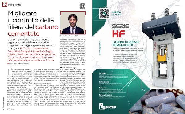 attuale situazione sui mercati delle materie prime presenta sfide enormi per l’ industria metallurgica, specialmente per il tungsteno, materia prima utilizzata per produrre il carburo cementato. Dal febbraio 2025 sono in vigore severe restrizioni per le esportazioni di tungsteno dalla Cina, che controlla oltre l’ 80 % dell’ estrazione e della lavorazione di questo metallo a livello mondiale. « Da una parte, ciò implica aumenti significativi dei costi per il tungsteno importato dalla Cina. Soprattutto nella seconda metà del 2025, la carenza di offerta ha fatto lievitare enormemente i costi. Rispetto all’ inizio dell’ anno, la rinomata agenzia di ricerche di mercato Fastmarkets, ad esempio, ha registrato un aumento di prezzo di circa il 130 % per il tungsteno( APT) nel mese di novembre. D’ altro canto, al momento, non è possibile garantire un approvvigionamento sicuro di tungsteno per il 2026. È prevedibile che ci saranno delle difficoltà, quindi dobbiamo impegnarci maggiormente per garantire la disponibilità di tungsteno » ha sottolineato Federico Costa, Presidente ECTA.
