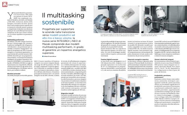 Yamazaki Mazak ha presentato la nuova serie j-NEO, della sua gamma di punta INTE- GREX, che comprende i modelli INTEGREX j-200 NEO e INTEGREX j-200S NEO, evoluzione diretta della famiglia j introdotta nel 2010. Questa linea vanta miglioramenti significativi in termini di controllo termico, potenza e compattezza rivelandosi una soluzione ideale per chi vuole effettuare lavorazioni complesse ad alto mix e basso volume, con un ottimo equilibrio tra prestazioni e costo.