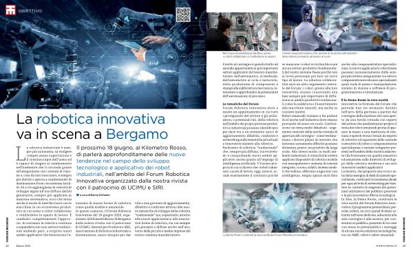 vanzata di nuove forme di robotica come quella mobile e umanoide. In questo scenario, il Forum Robotica Innovativa del 18 giugno 2026, organizzato al KilometroRosso di Bergamo dalla nostra rivista con il patrocinio di UCIMU, Sistemi per Produrre e SIRI, Associazione di Robotica Industriale e Automazione, nasce dunque per dar vita a una giornata di aggiornamento, dibattito e confronto attorno alle nuove tematiche di sviluppo della robotica“ tradizionale” ma, soprattutto, attorno alle nuove applicazioni e alle innovative forme di robotica, via via sempre più presenti e diffuse anche nell’ universo delle piccole e medie imprese del nostro sistema manifatturiero.