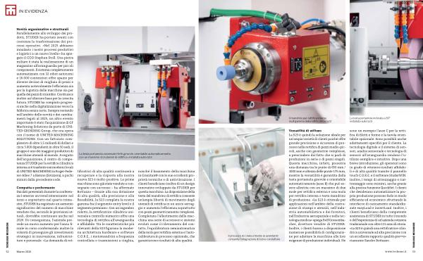 sono un esempio l’ asse C per la rettifica di filetti e forme e la tavola orientabile opzionale. Sono possibili anche adattamenti specifici per il cliente. La tecnologia digitale e il sistema di sensori, analisi sensoriale e tecnologia di sensori all’ avanguardia rendono l’ u- tilizzo semplice e intuitivo. Dopo una breve introduzione, gli operatori sono in grado di ottenere risultati affidabili e di alta qualità tramite il pannello touch C. O. R. E. e il software StuderWIN. Inoltre, i tempi di attrezzaggio e riattrezzaggio sono minimi, anche grazie alla pratica funzione QuickSet. I clienti che desiderano automatizzare la propria produzione possono farlo in modo efficiente ed economico sfruttando le interfacce di caricamento standardizzate easyLoad e insertLoad. Inoltre, i clienti beneficiano della competente assistenza di STUDER in tutto il mondo e dell’ esperienza di un’ azienda svizzera tradizionale con oltre 111 anni di storia. « La S23 è quindi una rettificatrice cilindrica universale ad alta precisione con un eccellente rapporto qualità-prezzo » riassume Sandro Bottazzo.