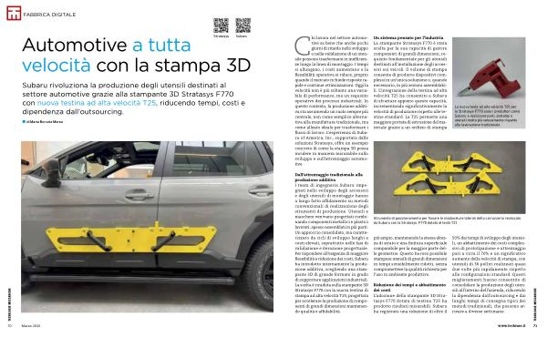 Riduzione dei tempi e abbattimento dei costi L’ adozione della stampante 3D Stratasys F770 dotata di testina T25 ha prodotto risultati misurabili. Subaru ha registrato una riduzione di oltre il