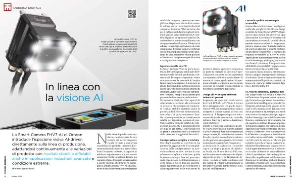 Nelle linee di produzione moderne, caratterizzate da lotti sempre più piccoli, frequenti cambi formato e un’ elevata variabilità dei prodotti, i sistemi di visione tradizionali mostrano spesso i loro limiti. In questo contesto, la capacità di adattarsi rapidamente alle variazioni senza interventi complessi diventa un requisito chiave. È proprio per rispondere a queste esigenze che Omron ha sviluppato la Smart Camera FHV7-AI, una soluzione di machine vision con intelligenza