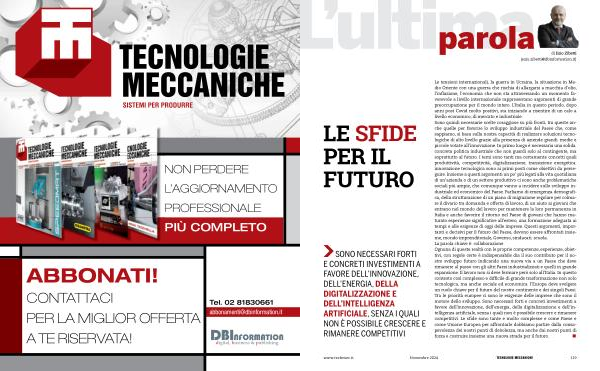 Le tensioni internazionali , la guerra in Ucraina , la situazione in Medio Oriente con una guerra che rischia di allargarsi a macchia d ’ olio , l ’ inflazione , l ’ economia che non sta attraversando un momento favorevole a livello internazionale rappresentano argomenti di grande preoccupazione per il mondo intero . L ’ Italia in questo periodo , dopo anni post Covid molto positivi , sta iniziando a risentire di un calo a livello economico , di mercato e industriale . Sono quindi necessarie scelte coraggiose su più fronti , tra queste anche quelle per favorire lo sviluppo industriale del Paese che , come sappiamo , si basa sulla nostra capacità di realizzare soluzioni tecnologiche di alto livello grazie alla presenza di aziende grandi , medie e piccole votate all ’ innovazione . In primo luogo è necessaria una solida , concreta politica industriale che non guardi solo al contingente , ma soprattutto al futuro . I temi sono tanti ma certamente concetti quali produttività , competitività , digitalizzazione , transizione energetica , innovazione tecnologica sono ai primi posti come obiettivi da perseguire . Insieme a questi argomenti un po ’ più legati alla vita quotidiana di un ’ azienda o di un settore produttivo ci sono anche problematiche sociali più ampie , che comunque vanno a incidere sullo sviluppo industriale ed economico del Paese . Parliamo di emergenza demografica , della strutturazione di un piano di migrazione regolare per colmare il divario tra domanda e offerta di lavoro , di un aiuto ai giovani che entrano nel mondo del lavoro per mantenere la loro permanenza in Italia e anche favorire il ritorno nel Paese di giovani che hanno maturato esperienze significative all ’ estero , una formazione adeguata ai tempi e alle esigenze di oggi delle imprese . Questi argomenti , importanti e decisivi per il futuro del Paese , devono essere affrontati insieme , mondo imprenditoriale , Governo , sindacati , scuola . La parola chiave è : collaborazione ! Ognuna di queste realtà con le proprie competenze , esperienze , obiettivi , con regole certe è indispensabile dia il suo contributo per il nostro sviluppo futuro indicando una nuova via a un Paese che deve rimanere al passo con gli altri Paesi industrializzati e quelli in grande espansione . Il lavoro non si deve fermare però solo all ’ Italia . In questo contesto così complesso e difficile di grande trasformazione non solo tecnologica , ma anche sociale ed economica , l ’ Europa deve svolgere un ruolo chiave per il futuro del nostro continente e dei singoli Paesi . Tra le priorità europee ci sono le esigenze delle imprese che sono il motore dello sviluppo . Sono necessari forti e concreti investimenti a favore dell ’ innovazione , dell ’ energia , della digitalizzazione e dell ’ intelligenza artificiale , senza i quali non è possibile crescere e rimanere competitivi . Le sfide sono tante e molto complesse e come Paese e come Unione Europea per affrontarle dobbiamo partire dalla consapevolezza dei nostri punti di debolezza , ma anche dai nostri punti di forza e costruire insieme una nuova strada per il futuro .