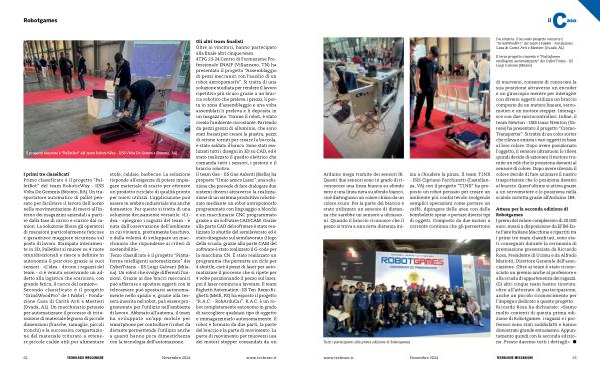 I primi tre classificati Primo classificato è il progetto “ PalletBot ” del team RoboticWay - IISS Volta De Gemmis ( Bitonto , BA ). Un trasportatore automatico di pallet pensato per facilitare il lavoro dell ’ uomo nella movimentazione di merci all ’ interno dei magazzini aziendali a partire dalla fase di carico e scarico dai camion . La soluzione libera gli operatori di mansioni particolarmente faticose e garantisce maggiore sicurezza sul posto di lavoro . Stampato interamente in 3D , PalletBot si muove su 4 ruote omnidirezionali e riesce a definire in autonomia il percorso grazie ai suoi sensori . « L ’ idea - dicono i ragazzi del team - ci è venuta osservando un addetto alla logistica che scaricava , con grande fatica , il carico del camion ». Secondo classificato è il progetto “ GrindWoodPro ” de I Fabbri - Fondazione Casa di Carità Arti e Mestieri ( Ovada , AL ). Un macchinario pensato per automatizzare il processo di triturazione di materiale legnoso di piccole dimensioni ( frasche , ramaglie , piccoli tronchi ) e la successiva compattazione del materiale triturato a ottenere piccole cialde utili per alimentare stufe , caldaie , barbecue . La soluzione risponde all ’ esigenza di potere impiegare materiale di scarto per ottenere un prodotto riciclato di qualità pronto per nuovi utilizzi . L ’ applicazione può essere in ambito industriale ma anche domestico . Per questo si tratta di una soluzione decisamente versatile . « L ’ i- dea - spiegano i ragazzi del team - è nata dall ’ osservazione dell ’ ambiente in cui viviamo , prettamente boschivo , e dalla volontà di sviluppare un macchinario che rispondesse ai criteri di sostenibilità ». Terzo classificato è il progetto “ Piattaforme intelligenti automatizzate ” dei CyberTitans - IIS Luigi Galvani ( Milano ). Un robot che svolge differenti funzioni . Grazie ai due bracci meccanici può afferrare e spostare oggetti con le telecamere può spostarsi autonomamente nello spazio e , grazie alla tessera inserita nel robot , può essere programmato per l ’ utilizzo nell ’ ambiente di lavoro . Abbinato all ’ automa , il team ha sviluppato un ’ app mobile per smartphone per controllare il robot da distante permettendo l ’ utilizzo anche a quanti hanno poca dimestichezza con la tecnologia dell ’ automazione .