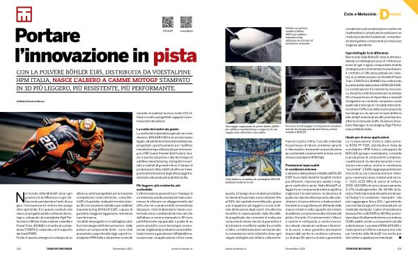 Ogni dettaglio fa la differenza Nel mondo della MotoGP, dove la vittoria si decide sui dettagli più piccoli, l’ ottimizzazione di ogni singolo componente diventa strategica per incrementare le prestazioni, il controllo e l’ efficienza globale del sistema. « La collaborazione con Gentilini Power Train, START4.0 e 3D4MEC ha confermato le potenzialità della polvere BÖHLER E185. La combinazione tra resistenza meccanica, tenacità e ottimizzazione per la stampa 3D ci ha permesso di rispondere a requisiti stringenti in un contesto complesso come quello del motorsport. I risultati ottenuti dimostrano l’ efficacia della nostra proposta tecnologica e ne aprono la replicabilità in altri ambiti industriali ad alte prestazioni », afferma Emanuele Goffo, Business Developer Manager di voestalpine High Performance Metals Italia.