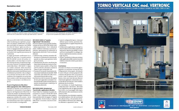 Occorre avviare fin d’ ora l’ adeguamento dei progetti, sfruttando le nuove ISO per arrivare preparati alla scadenza del gennaio 2027 alla nuova ISO 12100 10218, includere il cyber hardening nei capitolati, progettare i tre pilastri collaborativi con margini misurabili ed eseguire test FMPM sui cobot di Classe I: agire ora evita costose re ingegnerizzazioni quando, dal 20 gennaio 2027, il Regolamento Macchine renderà tali requisiti presunzione di conformità. Le tappe già fissate confermano la rapidità del percorso: la guida pratica ISO / TR 202183 uscirà nel primo semestre 2026 e, sei mesi dopo, le nuove ISO 10218 diverranno il riferimento legale in tutta l’ Unione. Il combinato Regolamento Macchine + ISO 10218 1 2 segna un cambio culturale: dalla macchina segregata al robot partner, protetto da cybersecurity nativa, limiti biomeccanici e validazioni periodiche. Chi si adeguerà in anticipo arriverà al 2027 non solo conforme, ma competitivo in un mercato dove uomini e robot lavoreranno fianco a fianco, in sicurezza e con fiducia reciproca.