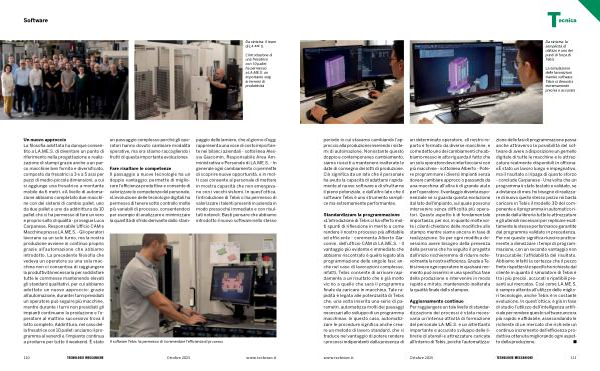 Aggiornamento continuo Per raggiungere un tale livello di standardizzazione dei processi è stata necessaria un’ intensa attività di formazione del personale LA. ME. S. e un altrettanto importante e accurato sviluppo delle librerie di utensili e attrezzature caricate all’ interno di Tebis, poiché l’ automatizza- zione delle fasi di programmazione passa anche attraverso la possibilità del software di avere a disposizione un gemello digitale di tutte le macchine e le attrezzature realmente disponibili in officina. « È stato un lavoro lungo e impegnativo, ma il risultato ci ripaga di questo sforzo- conclude Carpanese- Una volta che un programma è stato testato e validato, se a distanza di mesi ho bisogno di realizzare di nuovo quello stesso pezzo mi basta caricare in Tebis il modello 3D del componente e il programma in automatico riprende dalla libreria tutte le attrezzature e gli utensili necessari per replicare esattamente le stesse performance garantite dal programma validato in precedenza. Per noi questo significa riuscire praticamente a dimezzare i tempi di programmazione, con un secondo vantaggio non trascurabile: l’ affidabilità del risultato. Abbiamo infatti la certezza che il pezzo finito rispetterà le specifiche richieste dal cliente in quanto il simulatore di Tebis è tra i più precisi, accurati e ripetibili presenti sul mercato ». Così come LA. ME. S. è sempre attenta all’ utilizzo delle migliori tecnologie, anche Tebis è in costante evoluzione. In quest’ ottica, è già in fase di studio l’ utilizzo dell’ intelligenza artificiale per rendere questo software ancora più rapido e affidabile, assecondando le richieste di un mercato che richiede un continuo incremento dell’ efficienza produttiva ottenuta migliorando ogni aspetto della produzione. www. techmec. it Ottobre 2025 111