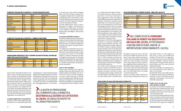 LA QUOTA DI PRODUZIONE DEL COMPARTO DELLA ROBOTICA DESTINATA ALL’ ESTERO SI È ATTESTATA AL 58,6 %, IN CRESCITA RISPETTO ALL’ ANNO PRECEDENTE