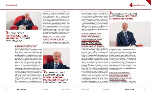 ALTRO SETTORE STRATEGICO È QUELLO DELL’ AERONAUTICA CIVILE, DOVE L’ ITALIA È UN PO’ IN SOFFERENZA. IL GRUPPO TECNICO DI CONFINDUSTRIA HA PUBBLICATO UN POSITION PAPER: CE NE PUÒ ILLUSTRARE BREVEMENTE I PUNTI SALIENTI? « Il Position Paper evidenzia come, a livello nazionale, sia quanto mai urgente definire un piano di www. techmec. it Ottobre 2025 77