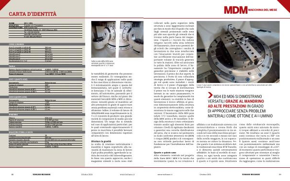 la variabilità di geometrie che possono essere realizzate. Di conseguenza anche il range di applicazioni nelle quali le due macchine si dimostrano vincenti è estremamente ampio e spazia dal termosanitario, nel quale il costruttore bresciano è tra le aziende di riferimento, all’ automotive, passando per il settore del bianco. Anche sul piano dei materiali lavorabili M04 e M06 si dimostrano versatili grazie al mandrino ad alte prestazioni in grado di approcciare senza problemi materiali come ottone e alluminio. Infine, il volume di lavoro di 300x300x400 mm rispettivamente in X, Y e Z consente di produrre una grande varietà di componenti di medio-piccole dimensioni. Un range che si estende nel caso di applicazioni particolari, per le quali orientando opportunamente il pezzo in macchina è possibile lavorare componenti con dimensioni superiori all’ area di lavoro.