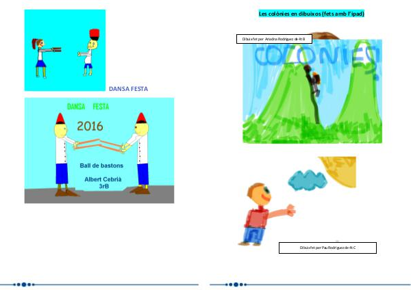 Les colònies en dibuixos (fets amb l’ipad) Dibuix fet per Ariadna Rodríguez de 4t B Dibuix fet per Pau Rodríguez de 4t C