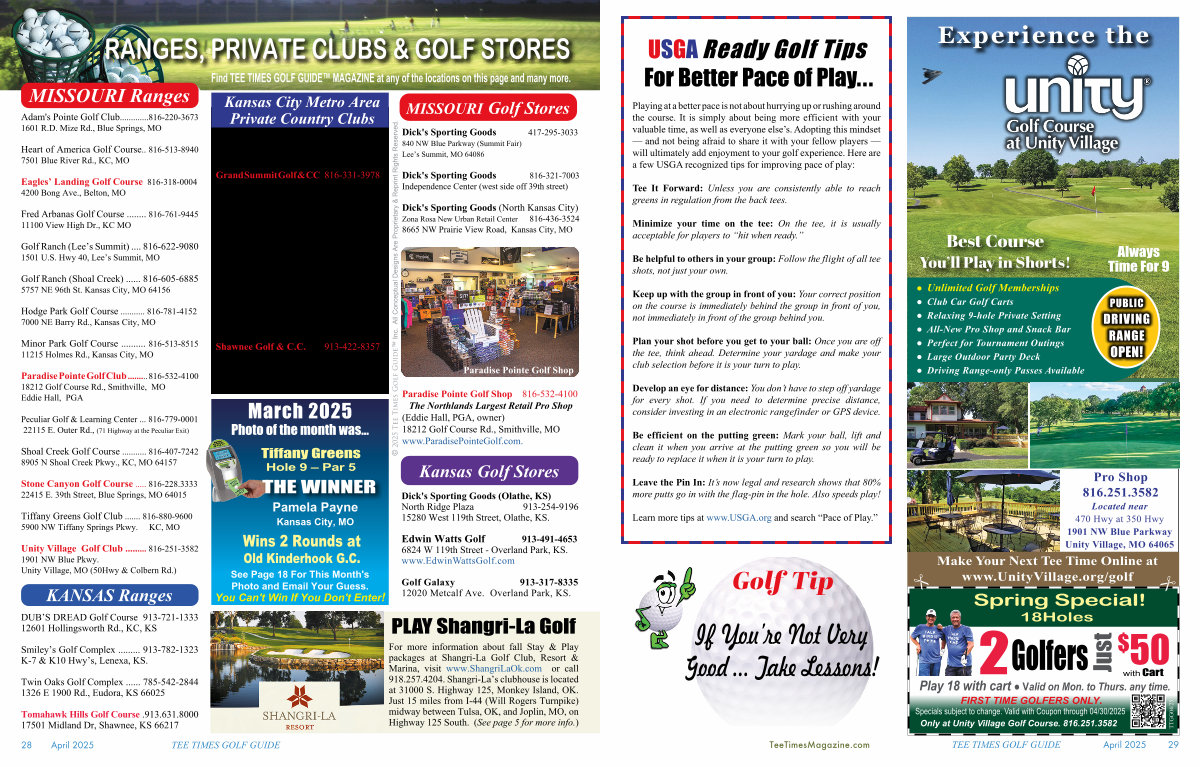 Unity Village Golf Club......... 816-251-3582 1901 NW Blue Pkwy. Unity Village, MO( 50Hwy & Colbern Rd.)