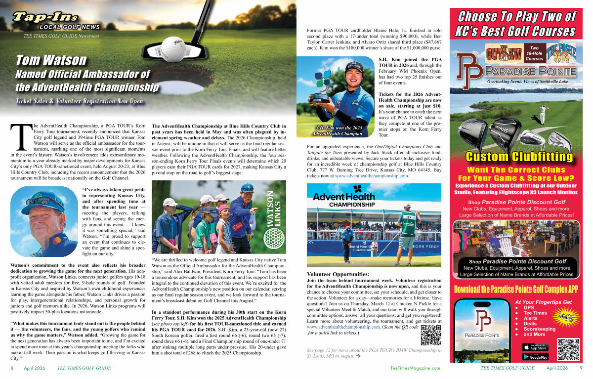 The AdventHealth Championship, a PGA TOUR’ s Korn Ferry Tour tournament, recently announced that Kansas City golf legend and 39‐time PGA TOUR winner Tom Watson will serve as the official ambassador for the tournament, marking one of the most significant moments in the event’ s history. Watson’ s involvement adds extraordinary momentum to a year already marked by major developments for Kansas City’ s only PGA TOUR‐sanctioned event, held August 20-23, at Blue Hills Country Club, including the recent announcement that the 2026 tournament will be broadcast nationally on the Golf Channel.