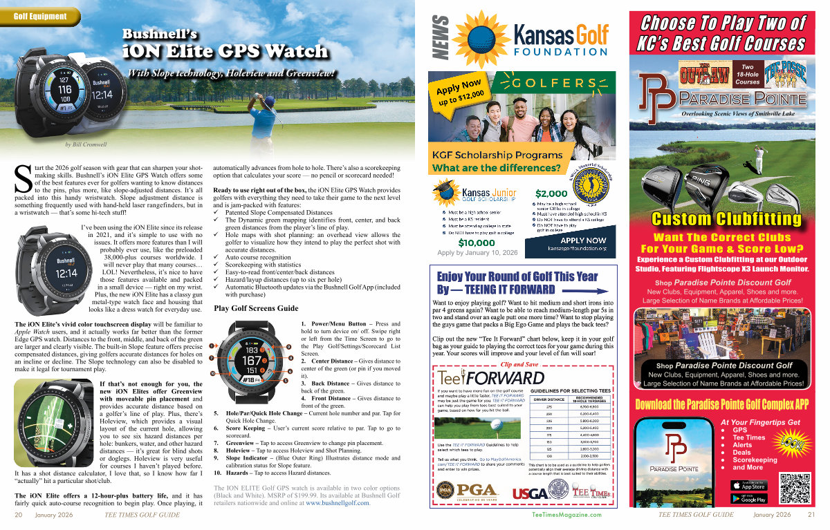 Start the 2026 golf season with gear that can sharpen your shotmaking skills. Bushnell’ s iON Elite GPS Watch offers some of the best features ever for golfers wanting to know distances to the pins, plus more, like slope-adjusted distances. It’ s all packed into this handy wristwatch. Slope adjustment distance is something frequently used with hand-held laser rangefinders, but in a wristwatch –– that’ s some hi-tech stuff!