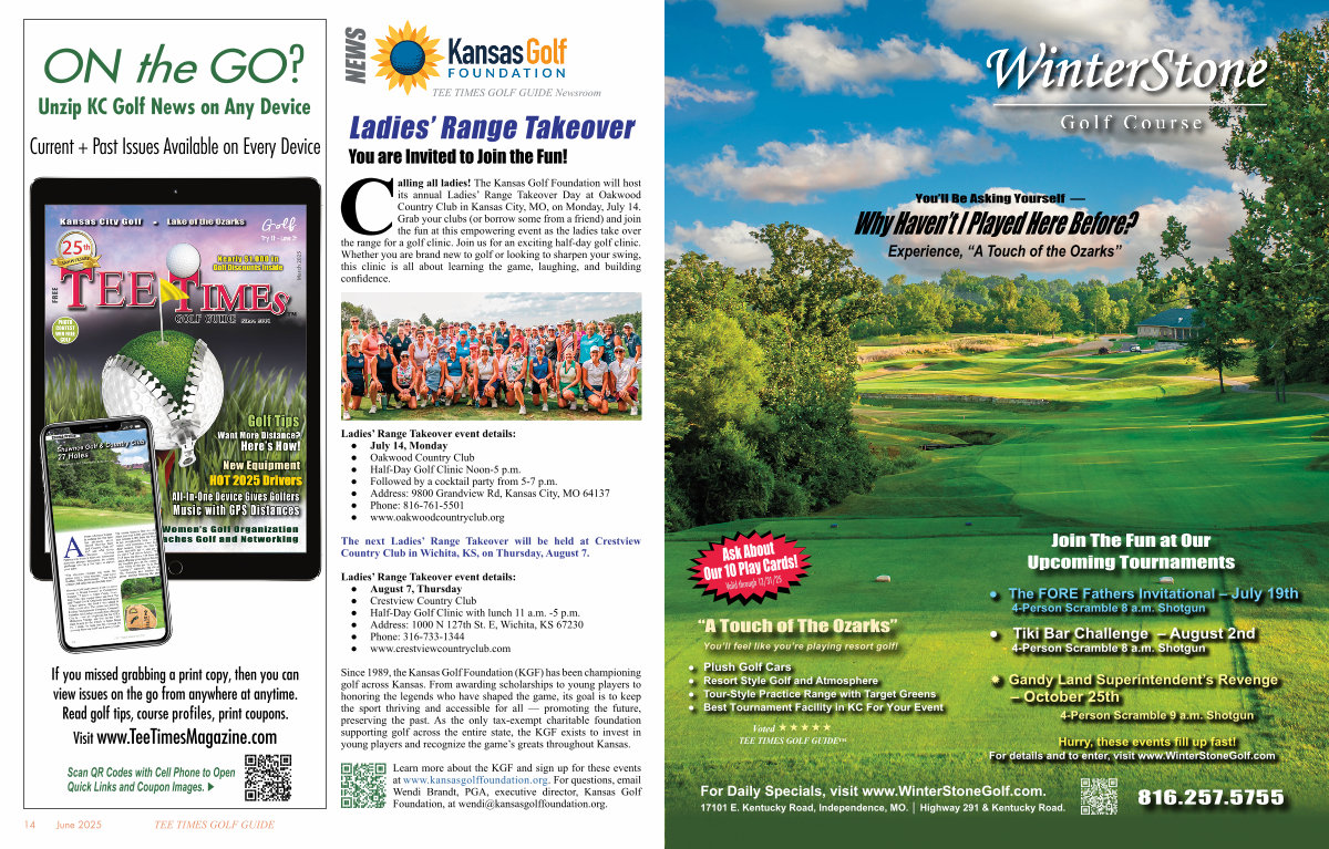 Calling all ladies! The Kansas Golf Foundation will host its annual Ladies’ Range Takeover Day at Oakwood Country Club in Kansas City, MO, on Monday, July 14. Grab your clubs( or borrow some from a friend) and join the fun at this empowering event as the ladies take over the range for a golf clinic. Join us for an exciting half-day golf clinic. Whether you are brand new to golf or looking to sharpen your swing, this clinic is all about learning the game, laughing, and building confidence.