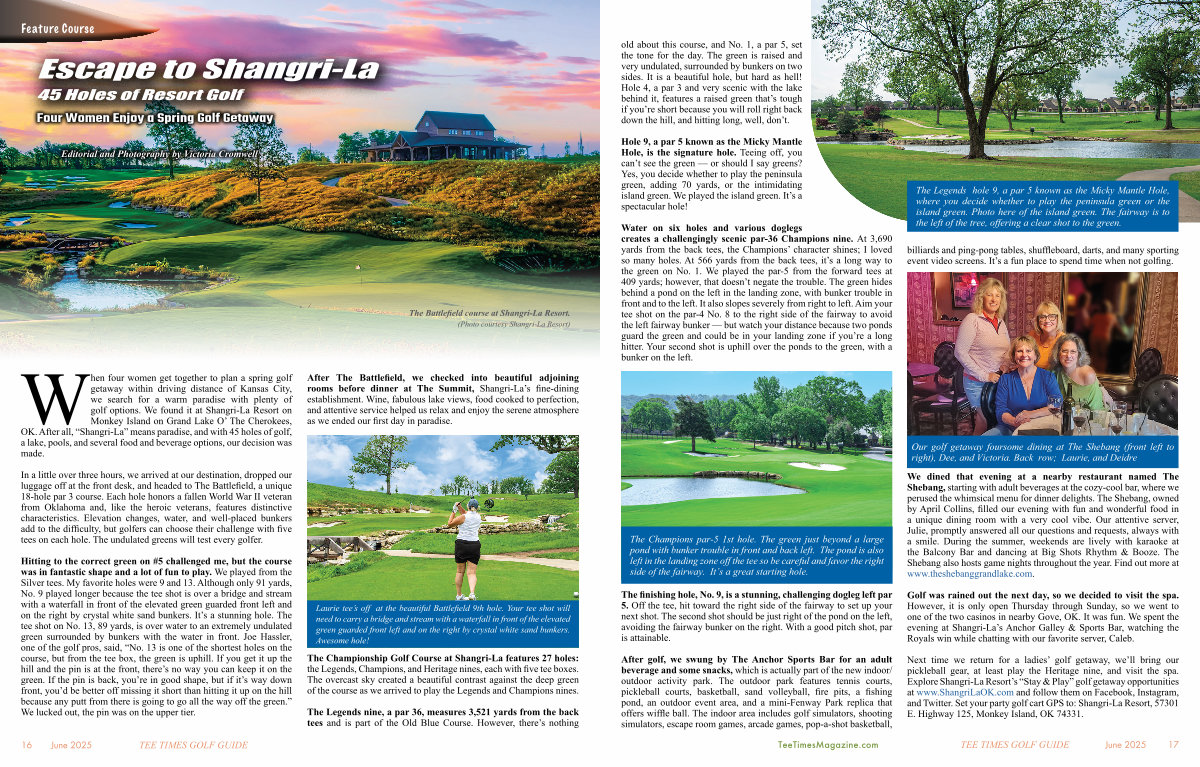 When four women get together to plan a spring golf getaway within driving distance of Kansas City, we search for a warm paradise with plenty of golf options. We found it at Shangri-La Resort on Monkey Island on Grand Lake O’ The Cherokees, OK. After all,“ Shangri-La” means paradise, and with 45 holes of golf, a lake, pools, and several food and beverage options, our decision was made.