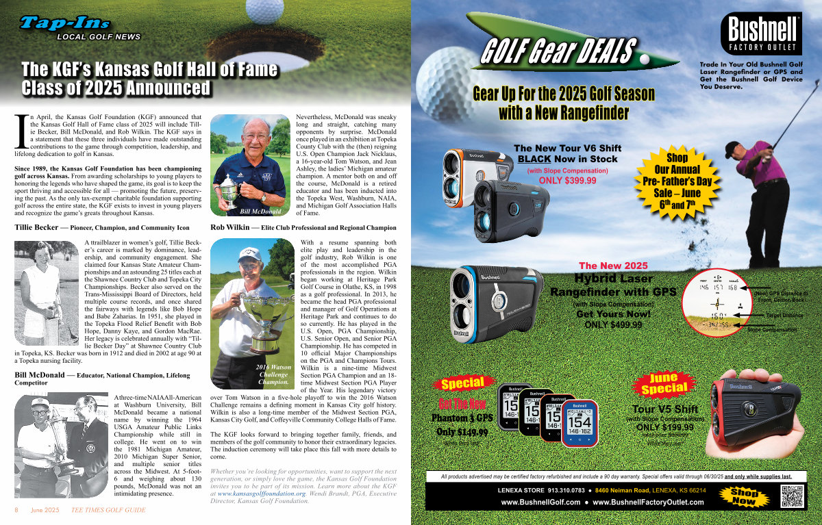 In April, the Kansas Golf Foundation( KGF) announced that the Kansas Golf Hall of Fame class of 2025 will include Tillie Becker, Bill McDonald, and Rob Wilkin. The KGF says in a statement that these three individuals have made outstanding contributions to the game through competition, leadership, and lifelong dedication to golf in Kansas.