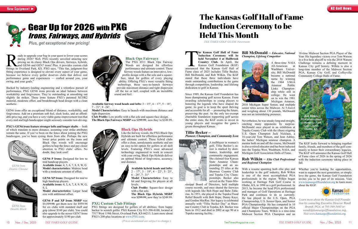 The Kansas Golf Hall of Fame Induction Ceremony will be held November 4 at Hallbrook Country Club. In April, the Kansas Golf Foundation( KGF) announced that the Kansas Golf Hall of Fame class of 2025 includes Tillie Becker, Bill McDonald, and Rob Wilkin. The KGF stated that these three individuals have made outstanding contributions to the game through competition, leadership, and lifelong dedication to golf in Kansas.