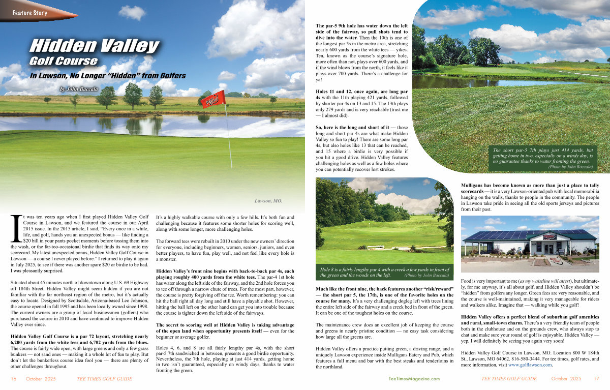 Hidden Valley offers a perfect blend of suburban golf amenities and rural, small-town charm. There’ s a very friendly team of people both in the clubhouse and on the grounds crew, who always stop to chat and make sure your round of golf is enjoyable. Hidden Valley— yep, I will definitely be seeing you again very soon!
