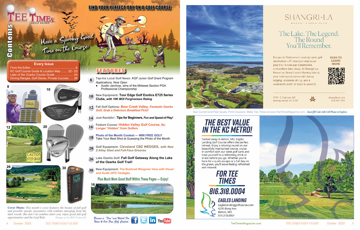 Cover Photo: This month’ s cover features the beauty of fall golf and possible spooky encounters with zombies emerging from the dark woods. But don’ t let zombies deter you, enjoy great fall golf opportunities and the Leaf Rule.( Image art by Bill Cromwell)