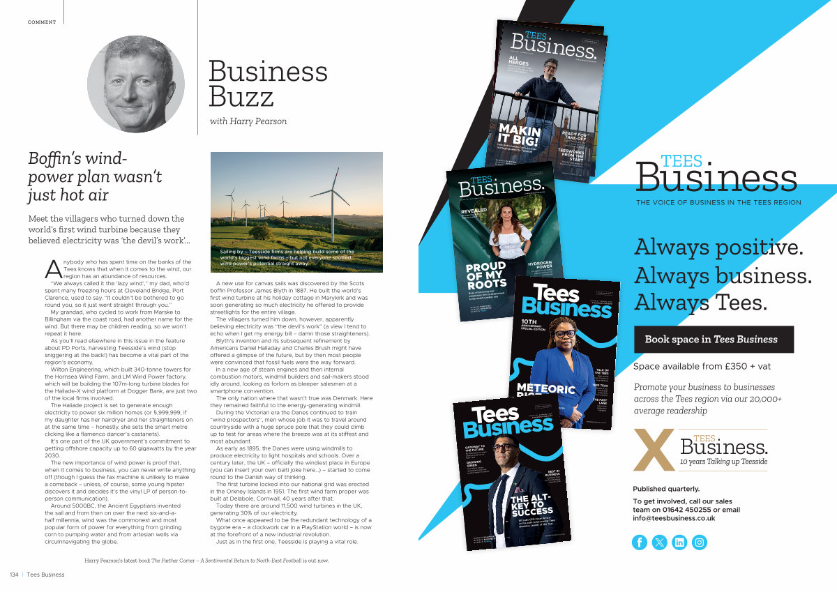 As you’ ll read elsewhere in this issue in the feature about PD Ports, harvesting Teesside’ s wind( stop sniggering at the back!) has become a vital part of the region’ s economy.